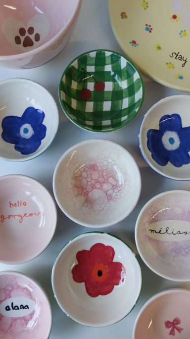 "Ich habe schon mehrmals bei Nicole Keramik bemalt und ich liebe es immer wieder aufs Neue. Es sind herrlich entspannende Stunden. Und die Farbe auf die Keramik zu tupfen, zu blubbern und zu spritzen tut einfach der Seele gut. Es entstehen jedes Mal kleine eigene Meisterwerke und ich bin neugierig, wie es wohl nach dem Brand im Endergebnis aussieht. Vielen Dank für diese tolle, kreative Möglichkeit!"