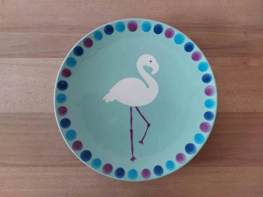 "Der Kindergeburtstag meiner Tochter hat allen viel Freude gemacht und die Kinder waren motiviert, sich einen farbenfrohen Teller zu gestalten. Mit Hilfe von Schablonen haben alle ohne viel Hilfe ein sehr schönes Ergebnis erhalten und nun eine schöne Erinnerung an den Tag. Wir planen schon den nächsten Keramikgeburtstag."