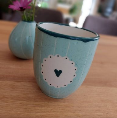 "Mit den tollen Techniken und der eigenen Kreativität kann jeder was Schönes zaubern. Es ist wie Meditation und immer eine Freude, wenn die Tasse, Butterdose, Salatschale etc. im Einsatz ist."
